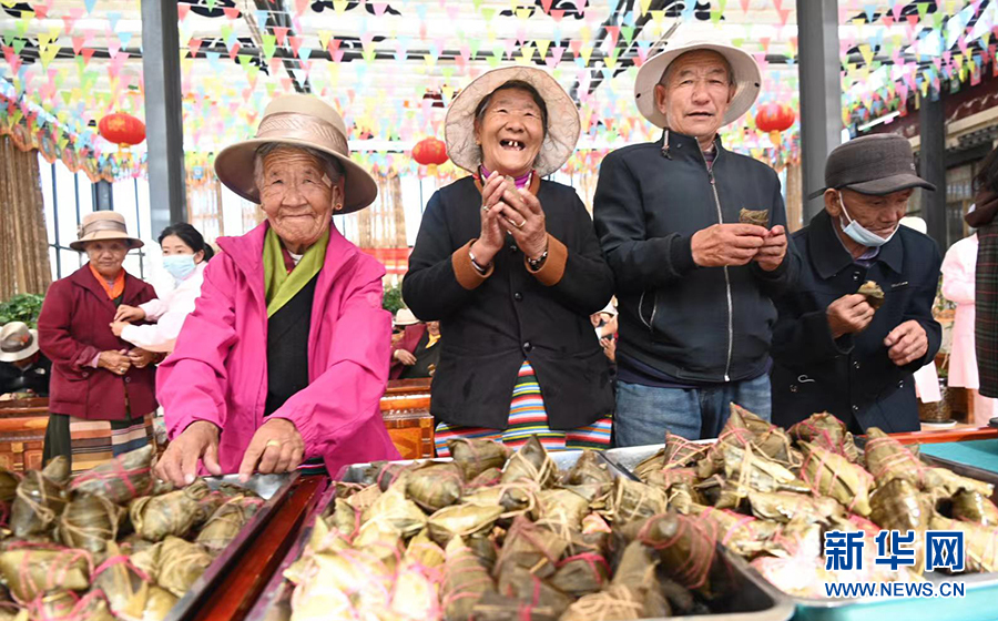 6月3日,在西藏山南市集中供養(yǎng)服務(wù)中心,老人們品嘗美味的粽子。新華網(wǎng)發(fā)(許國(guó) 攝)