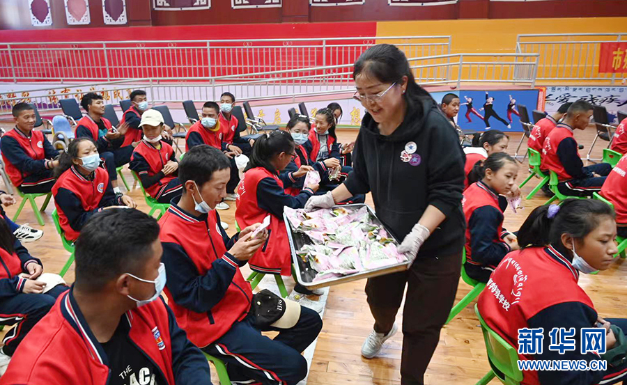 6月3日,在西藏山南市特教學(xué)校,孩子們領(lǐng)到了美味的粽子。新華網(wǎng)發(fā)(許國(guó) 攝)