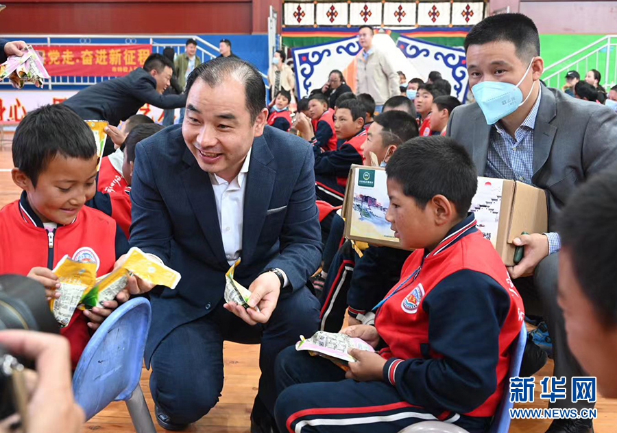 6月3日,在西藏山南市特教學(xué)校,安徽岸香集團(tuán)董事長(zhǎng)黃保鎖為孩子們分發(fā)粽子。新華網(wǎng)發(fā)(許國(guó) 攝)