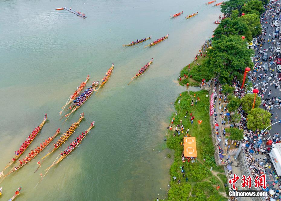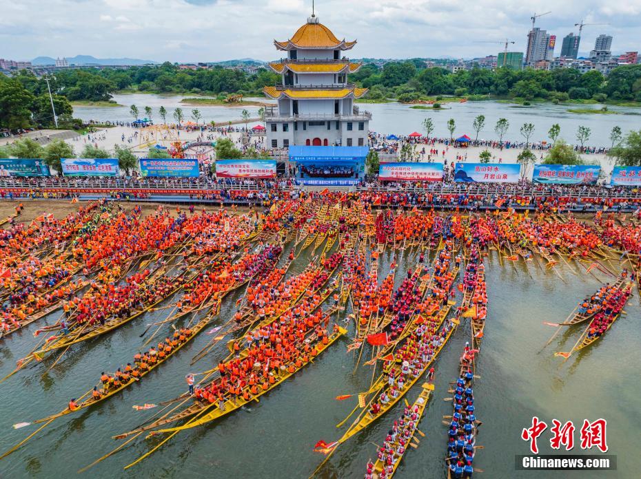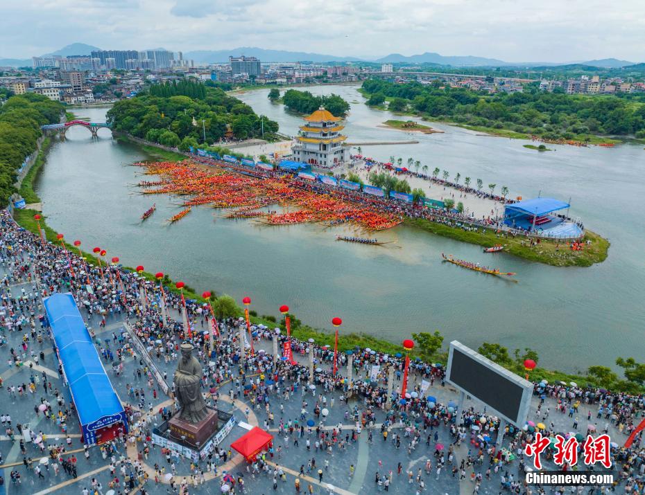 道州龍船賽起源宋代,2021年,道州龍船習(xí)俗列入國家級非物質(zhì)文化遺產(chǎn)代表性項目名錄。圖為賽事吸引172艘龍船、4816名民間運動員參賽。