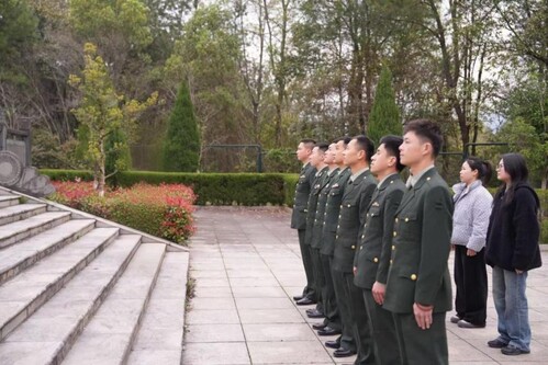 在莊嚴(yán)肅穆的烈士紀(jì)念碑前,全體人員向烈士英魂鞠躬默哀、敬獻(xiàn)菊花,表達(dá)對革命先烈的深切懷念和崇高敬意。