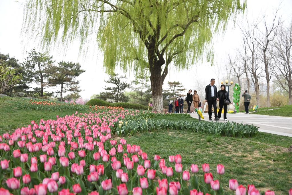 4月4日,游客在北京世界花卉大觀園游覽。新華社記者任超 攝