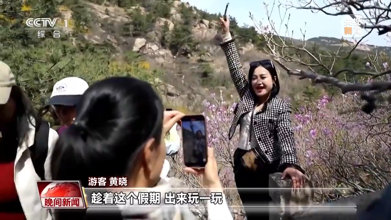 在山東青島大珠山,這幾天正是觀賞野生杜鵑花的最佳時(shí)期,吸引了眾多市民游客前來登山賞花。