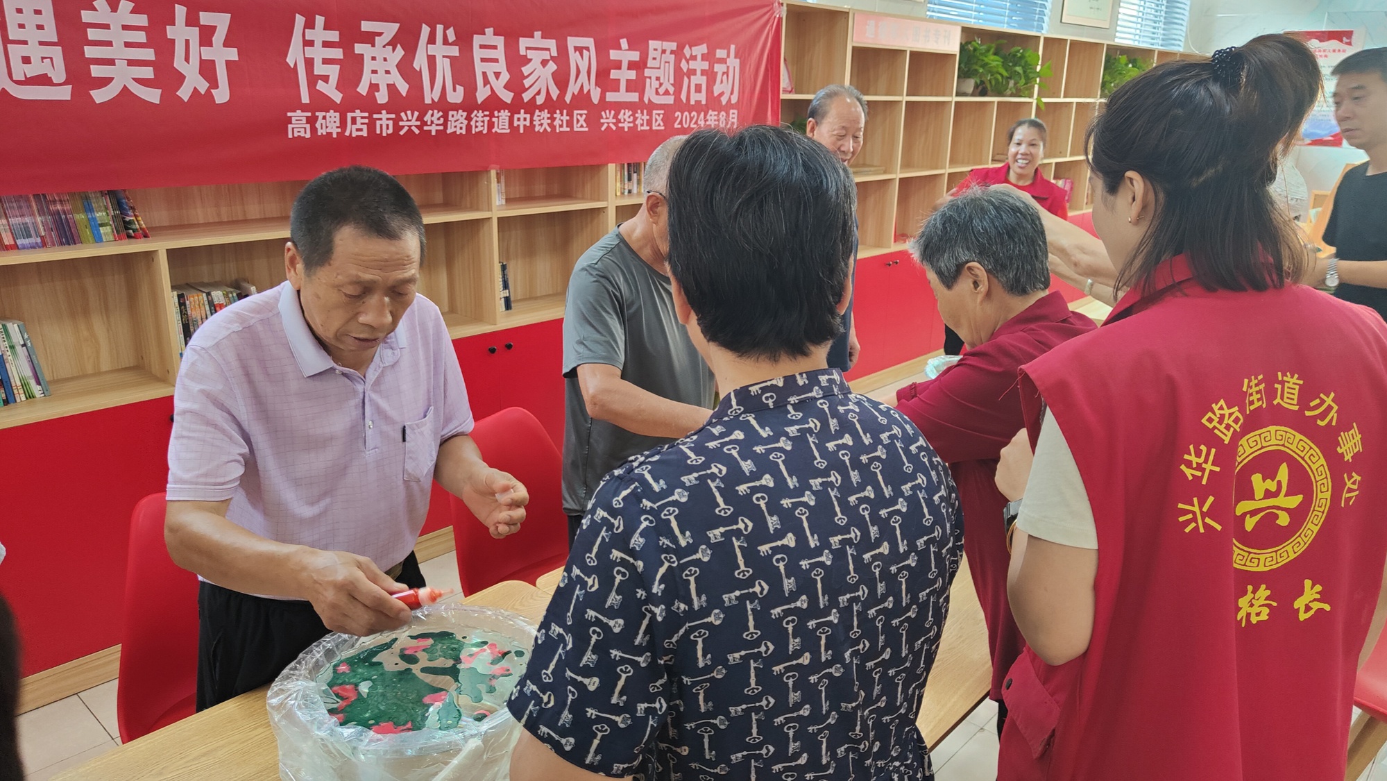 在中鐵社區(qū)群眾活動(dòng)中心,工作人員為居民介紹了漆包和古法造紙術(shù)的技藝特點(diǎn),并指導(dǎo)大家親手體驗(yàn)制作。