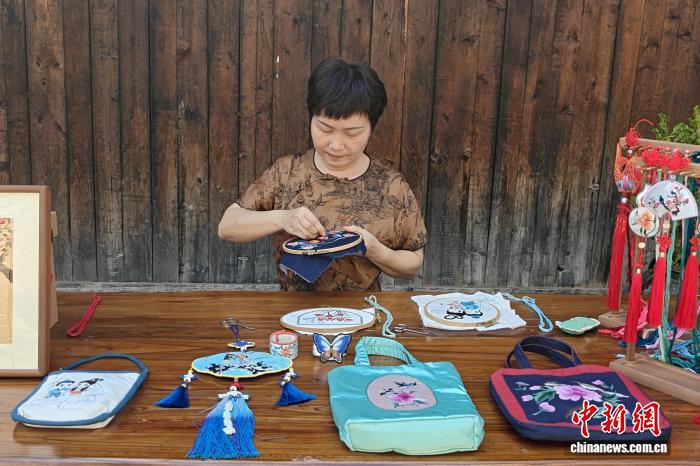 “刺繡圖案以動植物、自然元素和文化符號組合而成,蘊含祈福納吉的寓意。”張春梅將傳統(tǒng)技藝與現(xiàn)代審美相結合,繡制的服飾、手工布包、小掛飾、掛畫等頗受歡迎。
