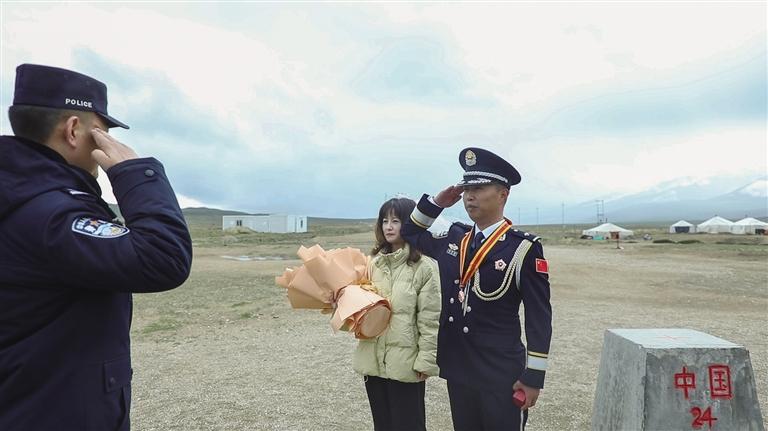 姚萬權是里孜出入境邊防檢查站的一名民警,8月5日,他的新婚妻子趙詩衡趁著暑假來到了里孜口岸探望他??粗L途奔波前來,又因為高原反應疲憊憔悴的妻子,他準備在海拔4772米的界樁前給妻子補辦一個求婚儀式,這是屬于戍邊民警的“硬核”浪漫。