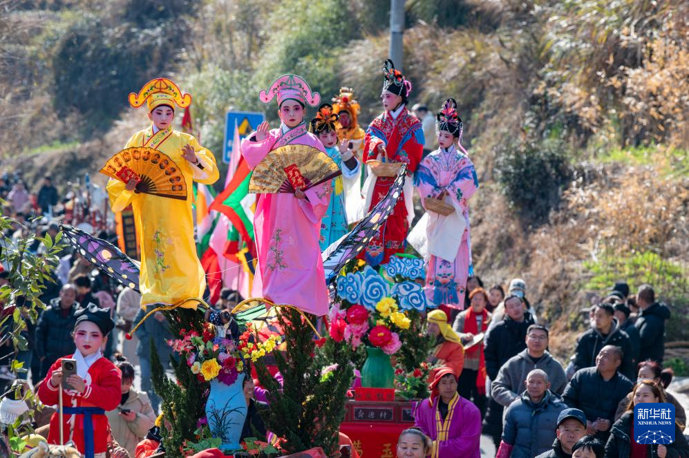2月11日,在湖南省汨羅市長樂鎮(zhèn),人們參加抬閣故事會?!伴L樂抬閣故事會”是長樂鎮(zhèn)當(dāng)?shù)匾豁梻鞒星甑脑?jié)民俗活動,2011年入選國家級非物質(zhì)文化遺產(chǎn)擴展項目名錄。