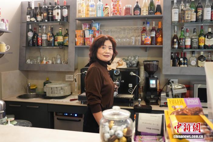 當(dāng)?shù)貢r間2月13日,意大利米蘭,華人老板陳曉丹在帕爾馬酒店前臺。中新社記者 單璐 攝