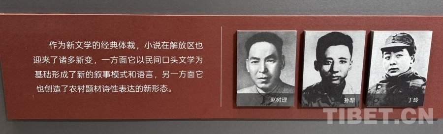 圖為中國(guó)現(xiàn)代文學(xué)館內(nèi),“山河跡憶——手稿里的抗戰(zhàn)中國(guó)”展覽中丁玲等作家的相關(guān)介紹