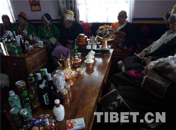 據(jù)了解,在藏歷十月三十白天,婦女們給孩子和自己洗發(fā),準(zhǔn)備過(guò)年的材料,如釀制青稞酒、制作油炸果子等。晚上10點(diǎn)左右,家中派出男性,舉行驅(qū)鬼儀式。大年初一的上午,全村的男人們騎上駿馬,到村落的山神處祭祀,更換經(jīng)幡,誦經(jīng)祈福。各家各戶回家后就在家中聚會(huì),一般是不出去的,個(gè)別時(shí)候,家中派出兩三個(gè)青年男女手持青稞酒和酒碗,端著切瑪盒,切瑪盒內(nèi)裝有青稞、糌粑、五彩的吉祥草,帶上青稞酒,到隔壁鄰居或親戚家拜年,見(jiàn)面后,互相祝福吉祥,敬獻(xiàn)青稞酒,各自抓起對(duì)方切瑪盒內(nèi)的青稞粒拋向空中,摔三下,祭拜天、地、神,祈禱新年吉祥如意。
