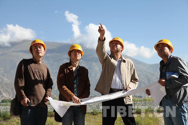 圖為2013年5月23日,劉爭(zhēng)平(右二)在拉日鐵路現(xiàn)場(chǎng)勘察。