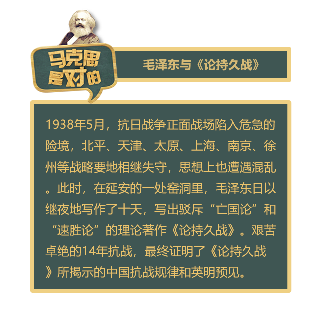 毛澤東同志說過一句話,他說:“馬克思主義有幾門學(xué)問,但基礎(chǔ)的東西是馬克思主義哲學(xué)。這個東西如果沒有學(xué)通,我們就沒有共同的語言,沒有共同的方法,扯了許多皮,扯還扯不清楚。有了辯證唯物論的思想,就省了許多事,也少犯許多錯誤。”《論持久戰(zhàn)》就是一個十分典型的例子。這部著作分析了中日雙方相互矛盾著的四個基本特點,它就是敵強我弱、敵小我大、敵退步我進(jìn)步、敵寡助我多助。根據(jù)這些特點的分析,就作出了中國不會滅亡,也不能速勝。只要經(jīng)過艱苦、持久的抗戰(zhàn),最后的勝利一定屬于中國的這樣一個正確的結(jié)論,這就為中國人民的抗日戰(zhàn)爭指明了勝利的方向。