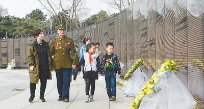 清明節(jié)前夕,來(lái)自浙江寧波、陜西西安和咸陽(yáng)、遼寧沈陽(yáng)和錦州的部分抗美援朝烈士親屬和志愿者在抗美援朝志愿軍老戰(zhàn)士的帶領(lǐng)下,來(lái)到沈陽(yáng)抗美援朝烈士陵園緬懷、悼念革命先烈。辛陽(yáng) 樊洪波 攝影報(bào)道