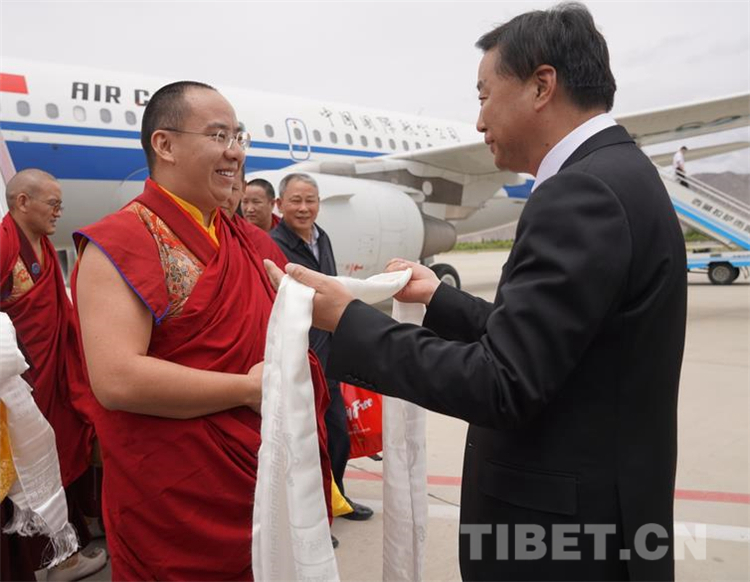 中國(guó)西藏網(wǎng)訊 6月的拉薩天藍(lán)如鏡、白云朵朵,沐浴在日光下的拉薩溫暖和煦。6月11日,全國(guó)政協(xié)常委、中國(guó)佛教協(xié)會(huì)副會(huì)長(zhǎng)班禪額爾德尼o確吉杰布乘機(jī)抵達(dá)拉薩。