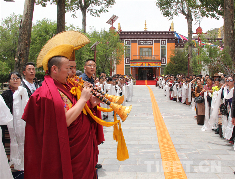 來(lái)自拉薩的僧眾代表和信教群眾代表,帶著虔誠(chéng)和喜悅的心情,滿(mǎn)懷期待十一世班禪的到來(lái)。當(dāng)大院內(nèi)響起法號(hào)聲時(shí),早已在此等候的僧俗信教群眾紛紛翹首踮足,一睹十一世班禪的風(fēng)采。