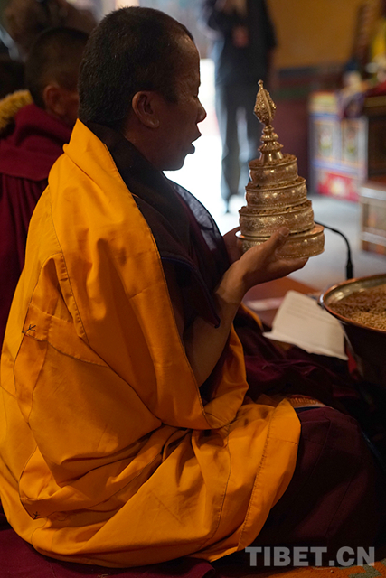 圖為十一世班禪領(lǐng)誦經(jīng)文。攝影:王淑