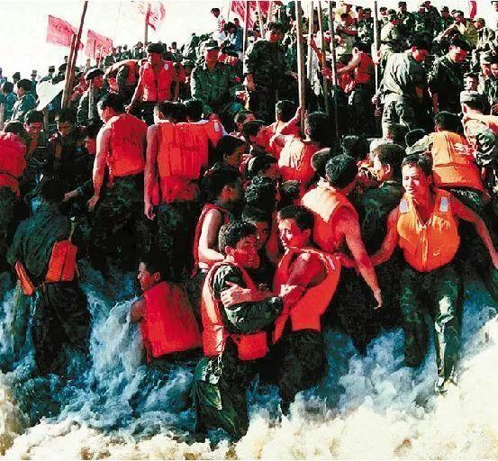 而那張官兵們站在決堤的激流中,以身體阻擋洪水的照片,深刻印了全國人民的腦海中。