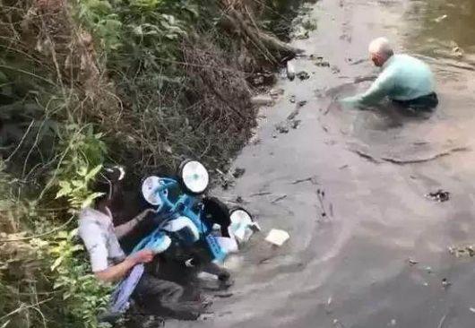 不慎連人帶車(chē)墜入河中