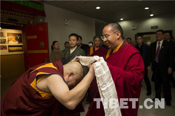圖為11月23日上午,十一世班禪來到中國藏學(xué)研究中心西藏文化博物館參觀《藏傳佛教活佛轉(zhuǎn)世專題展》。