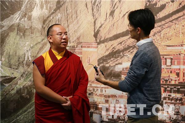 圖為十一世班禪在參觀完展覽之后接受中國西藏網(wǎng)記者專訪。