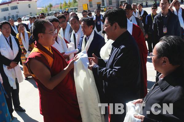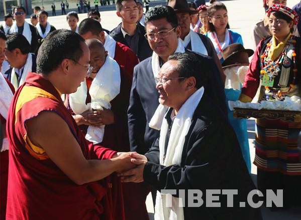 中國(guó)西藏網(wǎng)訊 9月27日,全國(guó)政協(xié)常委、中國(guó)佛教協(xié)會(huì)副會(huì)長(zhǎng)班禪額爾德尼o確吉杰布圓滿結(jié)束青海省、西藏自治區(qū)的各項(xiàng)社會(huì)調(diào)研和佛事活動(dòng)。攝影:王淑。