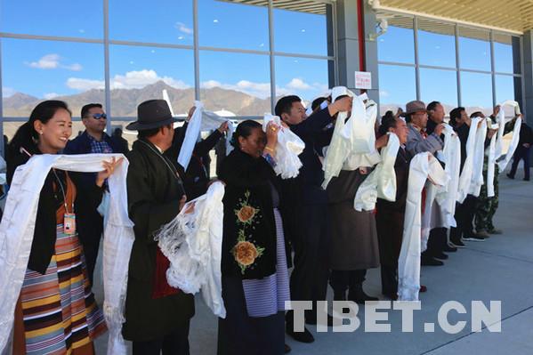 西藏自治區(qū)黨委常委、統(tǒng)戰(zhàn)部部長(zhǎng)旦科,西藏自治區(qū)政府黨組副書(shū)記格桑次仁,西藏自治區(qū)政府副主席、日喀則市委書(shū)記張延清等領(lǐng)導(dǎo)前往機(jī)場(chǎng)送行。攝影:王淑。