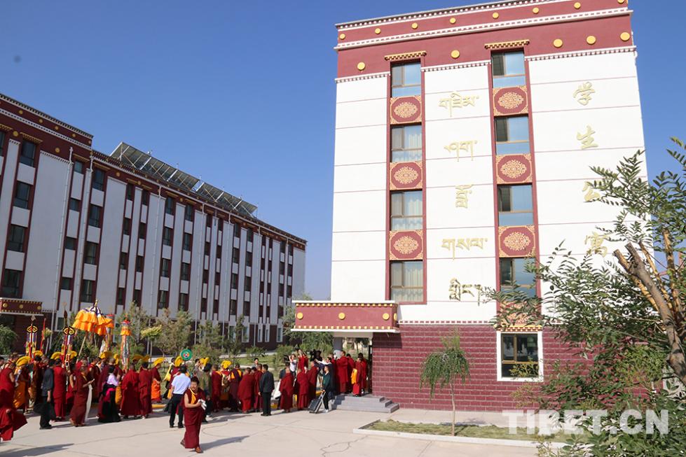 班禪大師此次前往位于貴德縣珍珠寺對(duì)面的青海省藏語系佛學(xué)院考察。青海省藏語系佛學(xué)院是由十世班禪大師倡議,1984年3月經(jīng)省人民政府批準(zhǔn),1986年9月在佛教圣地塔爾寺創(chuàng)辦的培養(yǎng)愛國(guó)愛教藏傳佛教高素質(zhì)僧才的地方性宗教院校,是藏傳佛教新的學(xué)銜制度具體實(shí)施單位和“智然巴”、“禪然巴”中級(jí)學(xué)銜和初級(jí)學(xué)銜授予單位。2014年國(guó)家投資1.16億元在海南州貴德縣新建佛學(xué)院,2016年3月交付使用,新學(xué)院建有教學(xué)與辦公一體的綜合樓、教職工公寓、學(xué)員宿舍、經(jīng)堂、佛塔、餐廳、風(fēng)雨操場(chǎng)等設(shè)施,水電暖網(wǎng)等設(shè)備齊全。