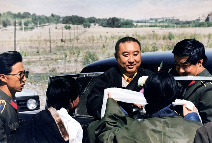 拉卜楞寺第六世嘉木樣o洛桑久美o圖丹卻吉尼瑪曾在悼念十世班禪時回憶,1951年,十世班禪從塔爾寺被迎請到拉卜楞寺,遵循拉卜楞寺認(rèn)定活佛轉(zhuǎn)世靈童的傳統(tǒng)習(xí)慣,認(rèn)定于1946年圓寂的第五世嘉木樣活佛的轉(zhuǎn)世靈童。當(dāng)時認(rèn)定書寫到:“經(jīng)班禪額爾德尼大師卜算決定,六世嘉木樣生在青海剛察貢瑪部落,父名道俄合,母名才讓卓瑪,佛為周本塔?!钡诹兰文緲踊罘鹫f,“這個被認(rèn)定的靈童就是我,我的法名也是班禪大師賜予的?!?/p>