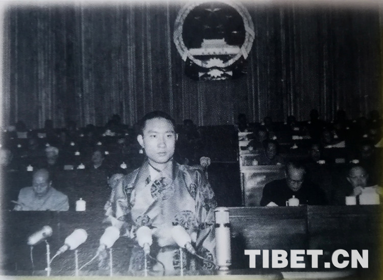 圖為1959年4月,十世班禪大師在第二屆全國人民代表大會第一次會議上發(fā)言。(圖片翻拍自《第十世班禪額爾德尼評傳》)