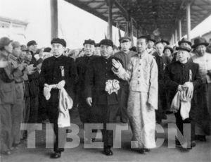 1951年4月27日,十世班禪首次進京,周恩來總理、朱德總司令等黨和國家領(lǐng)導(dǎo)人前往北京火車車站迎接。