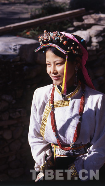 曾經(jīng)在雜志上看過一篇關(guān)于丹巴美人谷的報道,上面有一張三、四十人的丹巴女子盛裝大合影,眼睛逐一地在她們臉上掃過——簡直有些傻了:個個烏發(fā)白膚高鼻小口,身材高挑勻稱柔軟,如出水芙蓉般清麗俊秀…… 這等美麗不是百里挑一、也是五十里挑一的,合影中幾乎個個女子都有這般天生麗質(zhì),反反復(fù)復(fù)看了一遍又一遍,引來心中無限憧憬、無限神往。