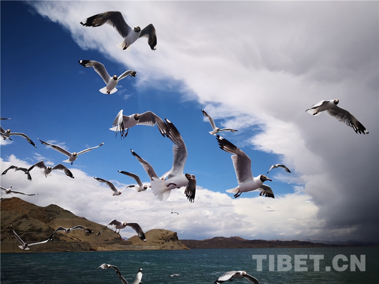 7月26日,十一世班禪觀覽班公湖,考察生態(tài)保護(hù)情況。置身于藍(lán)天綠水和湖光山色中,觀看鳥兒展翅飛翔和低空盤旋,聆聽美妙的鳥鳴聲,讓人感受到人與自然、與動(dòng)物和諧相處的溫馨場景。
