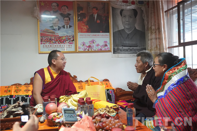 在十一世班禪走訪調(diào)研的村民云旦家里,干凈整潔的庭院、現(xiàn)代生活設(shè)備一應(yīng)俱全的客廳,展示著云旦家庭幸福美好的新生活。十一世班禪詳細(xì)了解了云旦家的生產(chǎn)生活狀況:家里多少人?生活過(guò)得怎么樣,孩子在哪里讀書(shū)上學(xué)?看病在拉薩還是哪里,可以報(bào)銷(xiāo)嗎?當(dāng)?shù)弥邳h和政府的惠民政策下,達(dá)曼人的生活條件得到了極大改善,教育、醫(yī)療、養(yǎng)老都有了保障時(shí),十一世班禪說(shuō):“你們過(guò)上的幸福美好新生活,是因?yàn)橛悬h和政府的好政策。你們生在了最好的時(shí)代,一定要通過(guò)自己勤勞的雙手進(jìn)一步改善自己和家人生活狀況;一定要把孩子送到學(xué)校,學(xué)到一技之長(zhǎng),今后能為家鄉(xiāng)多做貢獻(xiàn);要注重團(tuán)結(jié),把鄰里之間關(guān)系處理好、團(tuán)結(jié)好、關(guān)心好。祝村里今后的日子越來(lái)越紅火,我會(huì)為你們祈福,祈禱你們未來(lái)越來(lái)越美好”。