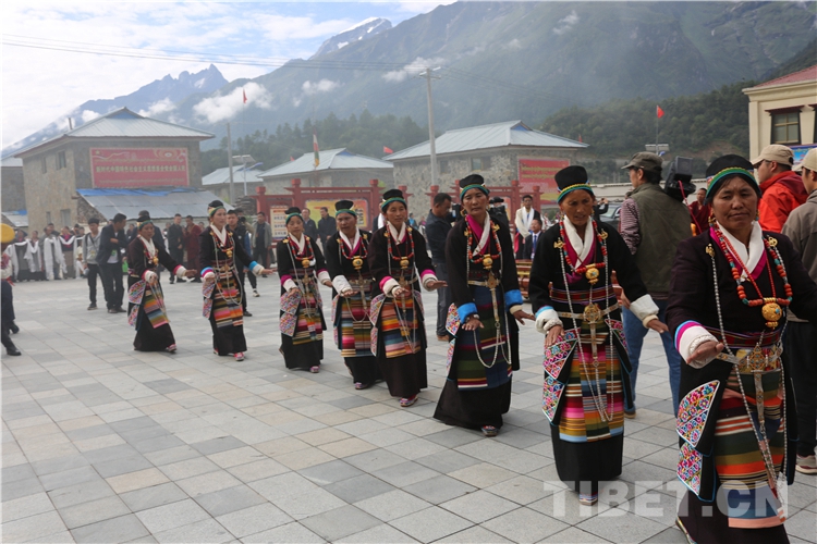 8月23日,瑪嘎村像過(guò)節(jié)一樣熱鬧,在村大壩子上群眾歡快地跳起了歷史悠久的 “同甲啦”舞,歡迎十一世班禪的到來(lái)?!巴桌病蔽枋橇鱾髁?300多年的古老民間歌舞,深受當(dāng)?shù)匕傩盏南矏?ài)。歌詞表現(xiàn)了當(dāng)?shù)厝藗儫釔?ài)生命、熱愛(ài)大自然、歌頌和平、歌頌友誼,唱出了家庭和睦、尊老愛(ài)幼、保護(hù)環(huán)境的樸素心愿。