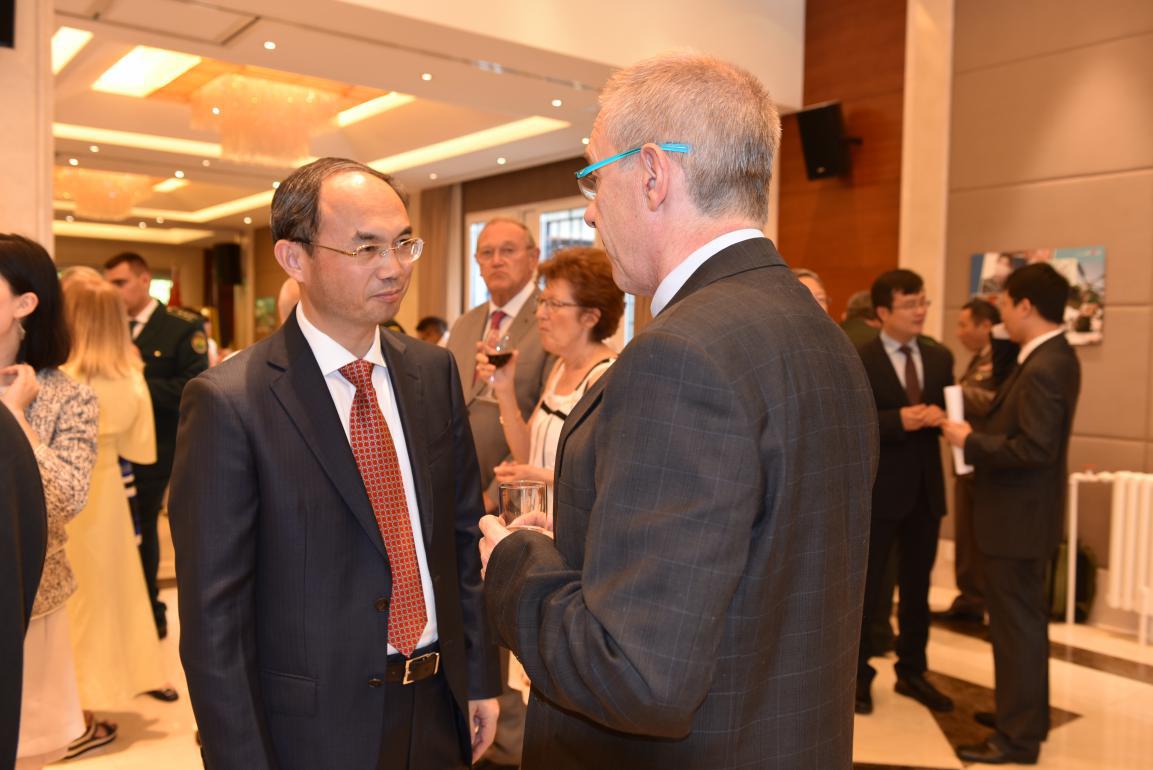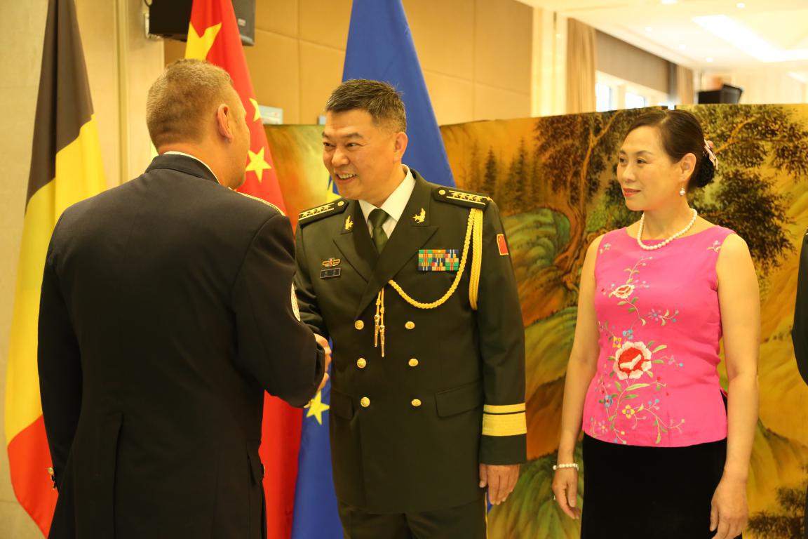 中國(guó)駐比利時(shí)大使曹忠明、駐歐盟使團(tuán)團(tuán)長(zhǎng)張明大使,歐盟軍委會(huì)主席格拉齊亞諾上將、北約國(guó)際軍參部合作安全部部長(zhǎng)托夫特少將、比國(guó)防參謀部代表德克羅普中校等歐盟、北約、比利時(shí)軍政官員,部分國(guó)家駐歐盟、北約、比利時(shí)使節(jié)、武官、軍事代表以及各界友好人士等約400余人出席招待會(huì)。