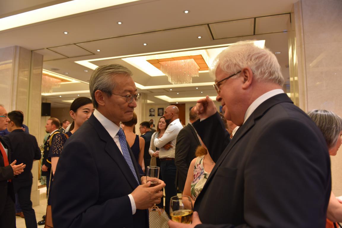 2019年7月24日,中國(guó)駐歐盟使團(tuán)軍事代表姚勤大校和駐比利時(shí)使館國(guó)防武官李琰文大校在駐比使館聯(lián)合舉辦“八一”建軍節(jié)招待會(huì),熱烈慶祝中國(guó)人民解放軍建軍92周年。