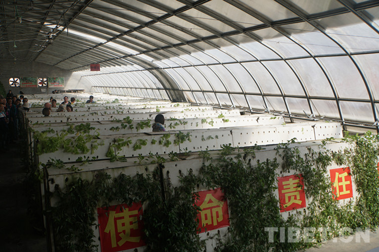 圖為納赤臺(tái)兵站官兵開發(fā)的無(wú)土種植溫室大棚 攝影:郝江震