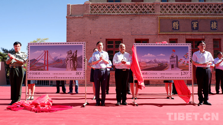 圖為《川藏青藏公路建成通車六十五周年》紀念郵票揭牌 圖片由主辦方提供