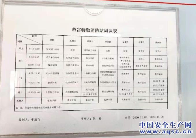 這是一張貼在宿舍墻上的表,早六晚八的作息,說明了故宮50年無火災的原因。