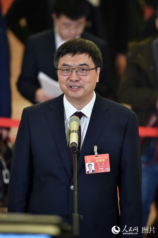 全國人大代表、河北省委常委、副省長、雄安新區(qū)黨工委書記、管委會主任陳剛回答記者提問。人民網(wǎng)記者 翁奇羽 攝
