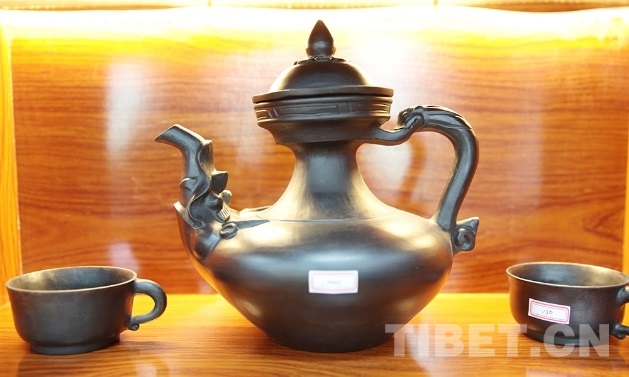 圖為班瑪縣電子商務(wù)服務(wù)中心內(nèi)展示的黑陶茶具 攝影:楊月云