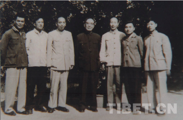1964 年6 月26 日,李四光先生接見希夏邦馬科考隊隊員。中排:尹贊勛(左二)、竺可楨(左五)、劉東生(左六)、李四光(左七)、楊鐘?。ㄓ乙唬埾|(右三)、樂森璕(右四)
