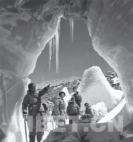 置身于希夏邦馬冰洞中的科考隊員。右二為施雅風