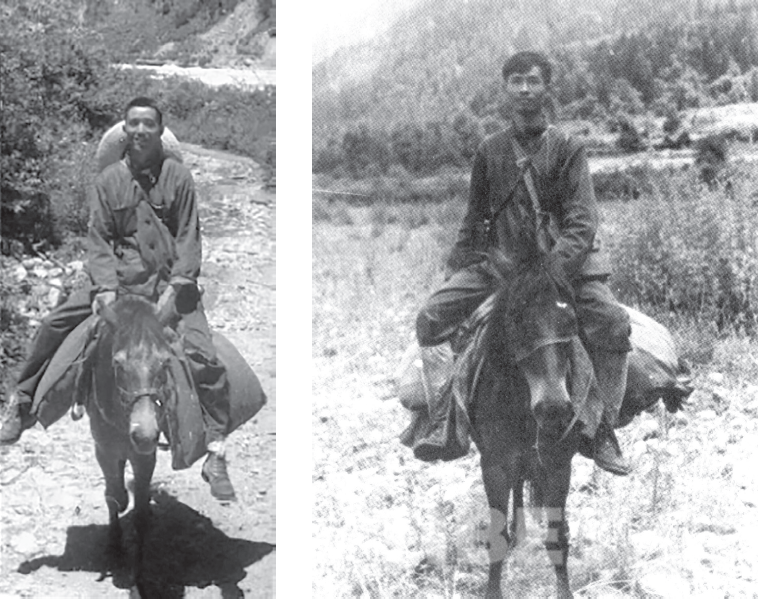 兩位地理學(xué)家1973年藏東南地區(qū)科考中的馬背形象。左圖為李炳元,右圖為鄭度