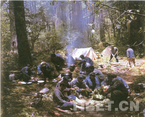 春夏秋冬的四季劃分,對于藏東南地區(qū)來說不盡合適,說是旱、雨兩季還差不多。從5月到9月,青藏隊出野外的黃金時段里,正值雨季,每天不分晨昏晝夜,盡皆雨霧茫茫。大家索性不再穿雨衣,軍用橡膠雨衣捂住了內(nèi)部潮氣很不爽,反倒不如淋個透濕來得痛快。間有倏然晴好的時候,陽光穿過云層和葉縫,明明亮亮灑滿林間空地,溫和地照耀在臉上身上。