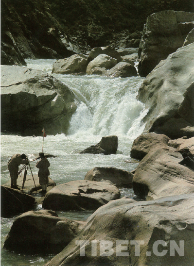 雅江考察任務(wù),除對水文特征——河道、流量、泥沙、水化學(xué)、洪枯水位等等進(jìn)行調(diào)查外,還負(fù)有水能資源及其合理開發(fā)利用、開發(fā)方式和工程條件的評價職責(zé)。關(guān)志華從地形圖和航拍照片上、從當(dāng)?shù)卦L問中得知,桑日—加查峽谷中有兩大瀑布,決定前往探察。為確保安全,山南地區(qū)及駐軍派出藏族向?qū)Ш陀?xùn)練有素的偵察兵隨行。