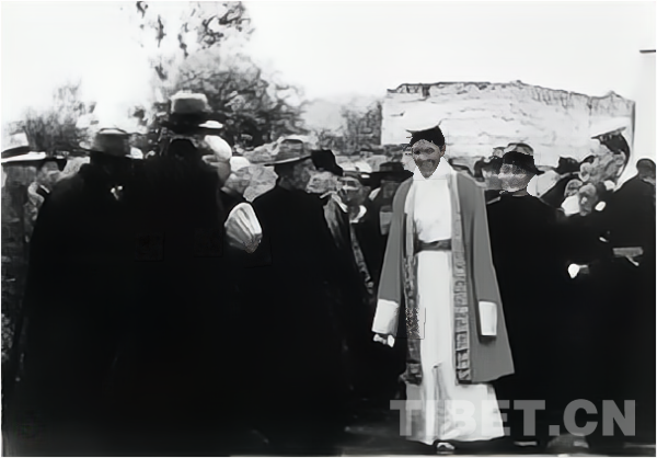 1940年1月15日,拉薩藍(lán)天白云,萬里晴空。西藏地方政府早在哲蚌寺附近,搭起了歡迎帳篷。國民政府派出的主持達(dá)賴?yán)镛D(zhuǎn)世事宜的蒙藏委員會委員長吳忠信率行轅抵達(dá)。吳忠信乘大轎,余員乘馬,受到西藏地方攝政熱振呼圖克圖的代表及三位噶倫率70余名僧俗官員熱烈歡迎,藏軍700人攜“四門小山炮和四挺機(jī)關(guān)槍,于路旁列隊(duì)恭迎?!薄案浇用袂皝須g迎者,亦踵相接。婦女多著艷麗之裝飾,五顏六色,數(shù)十成群,尤點(diǎn)綴風(fēng)光不少。各界歡迎人員所支帳篷,星羅棋布,不可勝數(shù)?!毙修@于午后四點(diǎn)入城。當(dāng)晚,地方政府設(shè)宴為吳忠信委員長一行洗塵。