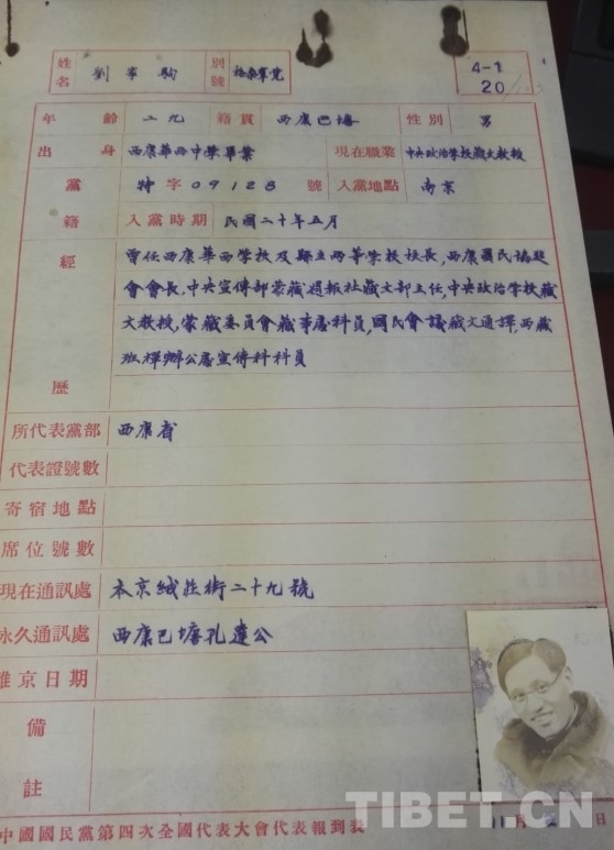 1931年,劉家駒加入中國(guó)國(guó)民黨,成為早期藏族黨員之一。他不僅出席了中國(guó)國(guó)民黨四中全會(huì),還參加了國(guó)民政府在洛陽(yáng)召開的國(guó)難會(huì)議,并將自己的著作《康藏的過去和現(xiàn)在》分發(fā)給與會(huì)人士,大聲呼吁大家重視康藏工作。同年11月21日,“西康旅京同鄉(xiāng)國(guó)防救亡會(huì)”成立,劉家駒被選舉為會(huì)長(zhǎng),在9名執(zhí)行理事中,有6名是藏族,分別為劉家駒(格桑群覺)、江安西(洛松鄧珠)、馬定西、佛平西、楊紹西、馮云仙(女)?!秶?guó)聞周報(bào)?名人錄》第8卷20期專門對(duì)時(shí)年29歲的劉家駒進(jìn)行了介紹。此時(shí)的他,已經(jīng)是中央政治學(xué)校(蒙藏政治訓(xùn)練班)的藏文教授,在教育領(lǐng)域發(fā)揮著重要作用,為培養(yǎng)了解藏族文化和語(yǔ)言的人才貢獻(xiàn)力量,為邊疆治理提供智力支持。