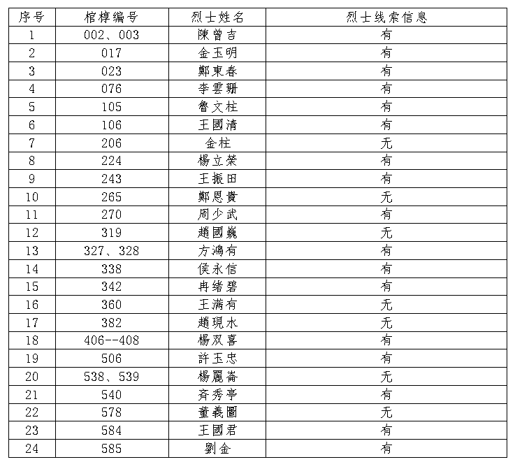 烈士信息線索: