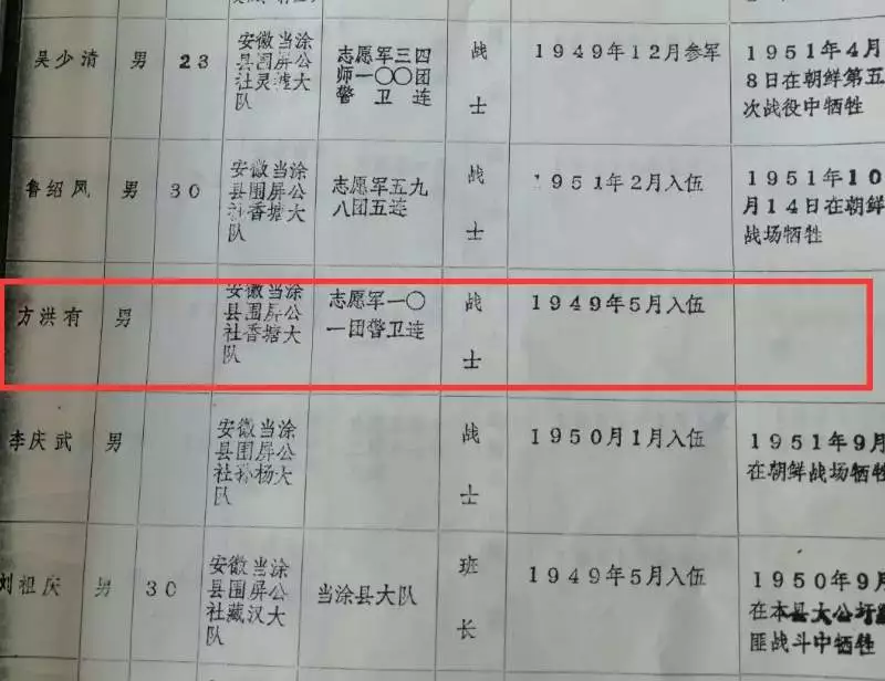 據(jù)“馬鞍山發(fā)布”消息,經(jīng)過(guò)信息篩選和檔案査證,馬鞍山當(dāng)涂籍烈士方洪有的親人就在當(dāng)涂縣姑孰鎮(zhèn)龍華村。